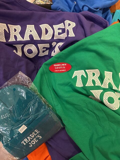 I’m actually seriously impressed, they showered him with 5 different tshirts, a beanie, and a hoodie. And his name tag! He had orientation and then his first training for 4 hours. He will officially be helping bag groceries, stock the shelves, and do all sorts of helpful things there.