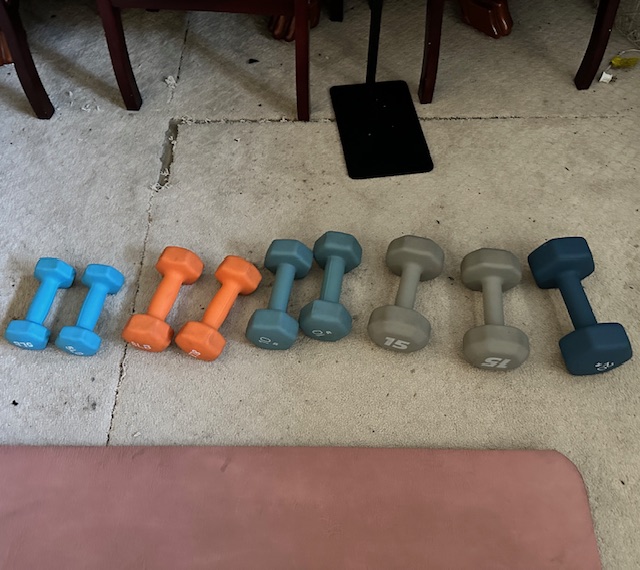 I literally could not decide which weights to use so I had to get out most of them and work them all in. I finally (finally) got my 20lb weights that I can hold (J’s feel terribly awkward) and I can’t imagine why I didn’t get them last year when I first wanted them, my workouts have improved so much the last week.